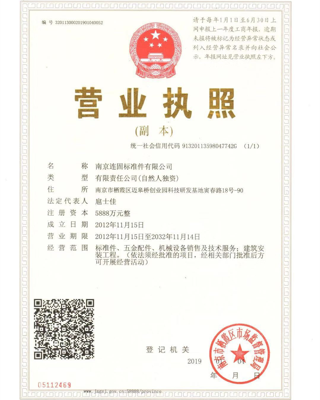 南京連固標準件有限公司,位于南京市棲霞區(qū)靖安鎮(zhèn)長江工業(yè)園,國家大型企業(yè)之一,真正的廠家直銷,價格實惠,現(xiàn)貨供應,庫存量較大,我公司是中國機械通用零部件協(xié)會會員,我公司長期與國內外大型企業(yè),重點工程配套!斑B固”品牌在國內外市場享有良好的聲譽,為了適應市場經(jīng)營和自身發(fā)展的需要,我公司專業(yè)生產(chǎn).銷售和批發(fā)碳鋼 .不銹鋼 .合金鋼 .銅.高強度標準件,年生產(chǎn)能力達8000多噸。碳鋼等級有:4.8級,6.8級,8.8級,10.9級,12.9級。不銹鋼材質有201. 202. 304. 316. 316L.904.904L。主要應用于機械設備,汽車制造. 鐵路.高速鐵路.建筑鋼結構、船舶、貨架,橋梁、道路,風力發(fā)電、石油管道等領域。產(chǎn)品質量和信譽得到客戶的一致好評。
